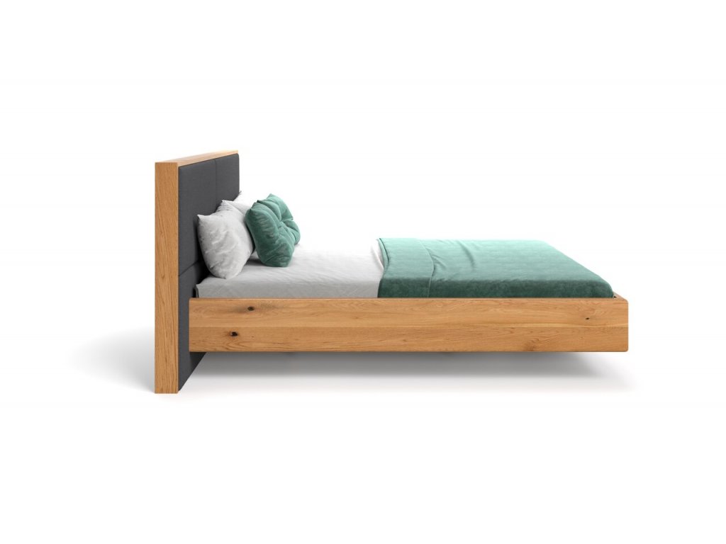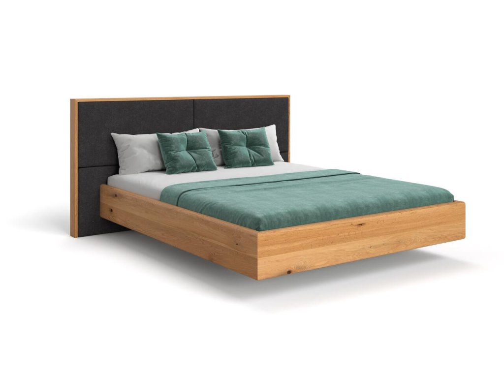 Moderná drevená manželská posteľ z dubového masívu, s levitujúcim efektom. Charakterizuje ju: